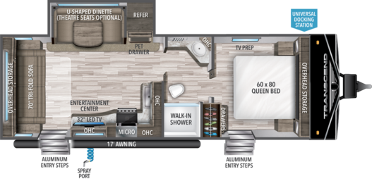 2024 GRAND DESIGN TRANSCEND 31FT -1 SLIDE -MODEL 245RL -NICE LAYOUT -SLEEPS 6. SOFA RECLINES AND ALSO BECOMES A BED OPTION. CAN SLEEP 2. THE BOOTH DINETTE DROPS INTO ANOTHER BED OPTION. LARGE SMART TV. STEREO SYSTEM. GALLEY KITCHEN WITH LARGE FARM STYLE SINK. STOVE/MICROWAVE/CONVECTION OVEN. LARGE 2 DOOR FRIDGE. LARGE ENTRYWAY INTO BATHROOM. MASTER BEDROOM ALSO HAS EASY ACCESS DOORWAY INTO IT. WALK AROUND QUEEN BED WITH UNDERBED STORAGE. HEAT/AC. DRY WT 6512LBS.