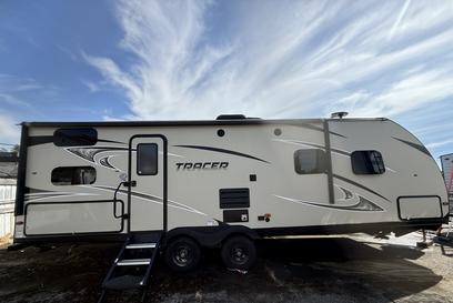 2018 PRIME TIME TRACER TRAVEL TRAILER 31FT W/SLIDE BUMPER PULL -SLEEPS 8. MODEL 274BH. FEATURES A NICE OPEN FLOOR PLAN- GREAT FOR A FAMILY. BOOTH DINETTE W/TABLE THAT ALSO MAKES INTO A BED. HIDE A BED SOFA --AND BACK REAR CORNER BUNKS. BIG BATHROOM WITH SHOWER-TOILET AND SINK. GALLEY KITCHEN WITH STOVE/OVEN-MICROWAVE AND FRIDGE. NICE SIZE KITCHEN SINK. ENTERTAINMENT CENTER WITH TV. FRONT BEDROOM WITH WALK AROUND QUEEN BED (UNDERBED STORAGE). UNDERNEATH FRONT STORAGE. AC/HEAT POWER AWNING. OUTDOOR KITCHEN-PULL OUT COUNTER-SINK-GRILL AND FRIDGE. WAS 21999.00 NOW ON SALE 18999.00 THRU 2/15/26.